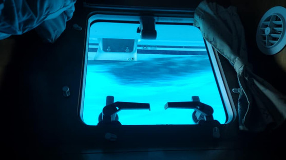 The water was sooooo blue in the middle of the lake!! Bluest we've seen yet in Trouvaille!! But we plan to see bluer! We stopped in the middle of the lake for a swim (and a shower) at about 300 ft deep!! Very comforting knowing nothing was going to eat us out there! Will be a different story once we get to saltwater!